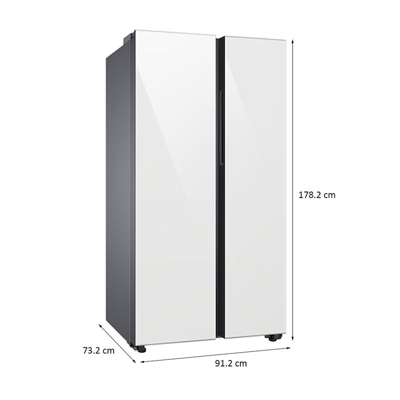 HECHO A LA MEDIDA Crea una cocina bellamente elegante y única. El acabado de vidrio blanco limpio está fabricado con materiales de calidad para combinar perfectamente con su espacio. Puerta de apertura automática Abre las puertas del frigorífico con menos esfuerzo. Las puertas tienen sensores en ambos lados que te ayudan a abrirlas liberando el sello cuando las tocas. También emite un sonido para avisarle cuando se abre. Sin manijas que sobresalgan, tiene una apariencia elegante y sin costuras. Fabricador de hielo automático doble Asegúrate de estar siempre preparado para cualquier ocasión con dos tipos diferentes de hielo. El Dual Auto Ice Maker hace cubos de hielo y bocados de hielo, que enfrían las bebidas mucho más rápido. Puede hacer 4,4 libras de hielo al día y almacenar hasta 9,1 libras. Y, como está en el congelador, libera espacio en la nevera. Gran capacidad con tecnología SpaceMax™b Almacene más alimentos con un espacioso 22.6 cu. pies (654 L) interior. La exclusiva tecnología SpaceMax™ permite que las paredes sean delgadas, por lo que crea espacio de almacenamiento adicional sin aumentar las dimensiones externas. Modo de energía SmartThings AI Reduzca su uso de energía hasta en un 15 % con el modo AI Energy. Si su factura de electricidad estimada supera su objetivo preestablecido, tiene la opción de ahorrar energía. Optimiza la velocidad del compresor y el ciclo de descongelación, según su patrón de uso y el entorno. Filtro de agua interno El filtro de agua interno está alineado con la apariencia minimalista integrada del refrigerador, sin que se vea nada en el exterior. Pantalla compatible con ADA Use el refrigerador con facilidad y confianza si tiene restricciones de movimiento. Su pantalla interna cumple con los estándares de la Ley de Estadounidenses con Discapacidades (ADA). Por lo tanto, todos los controles están al alcance de la mano y se pueden usar con una sola mano. Certificación ENERGY STAR® Certificación ENERGY STAR®, por lo que puede ahorrar dinero utilizando menos energía sin sacrificar el rendimiento o la funcionalidad.