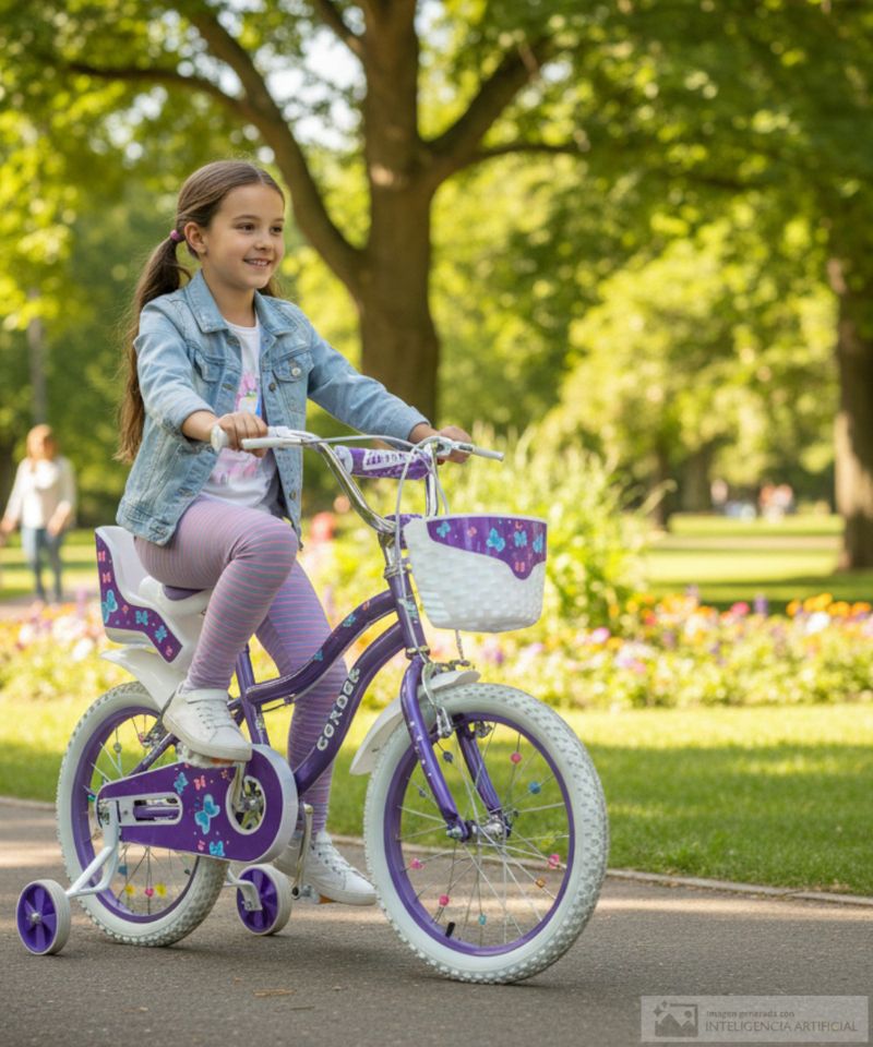 Bicicleta infantil con diseño colorido y detalles decorativos atractivos.