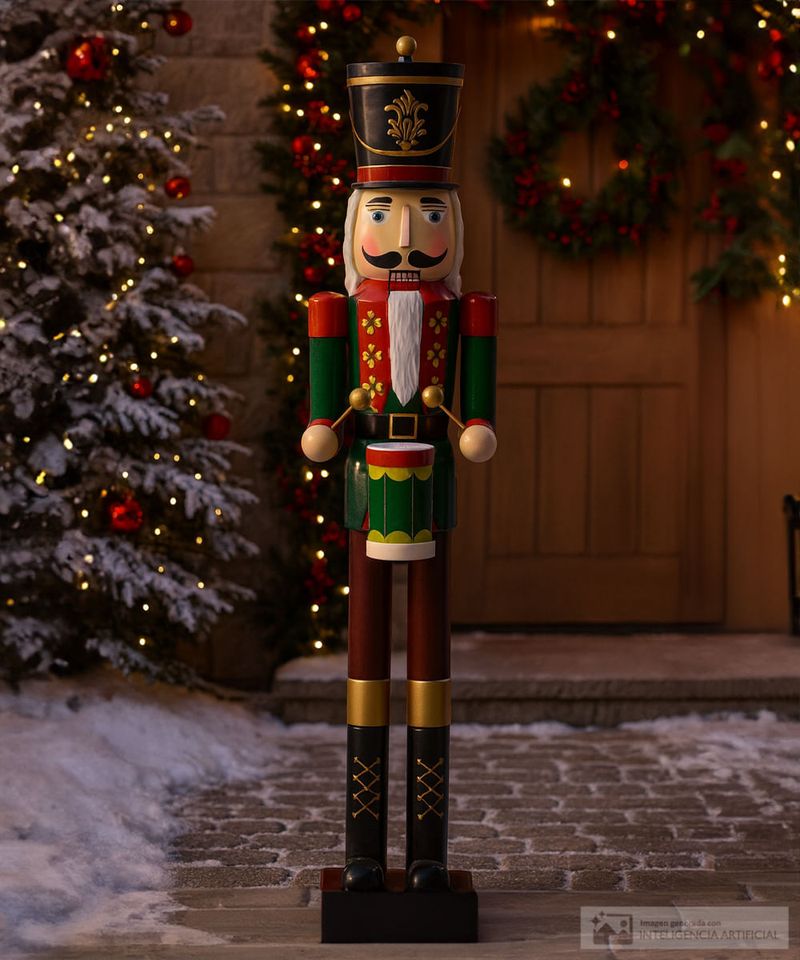 Figura decorativa de cascanueces con detalles tradicionales y acabado brillante.