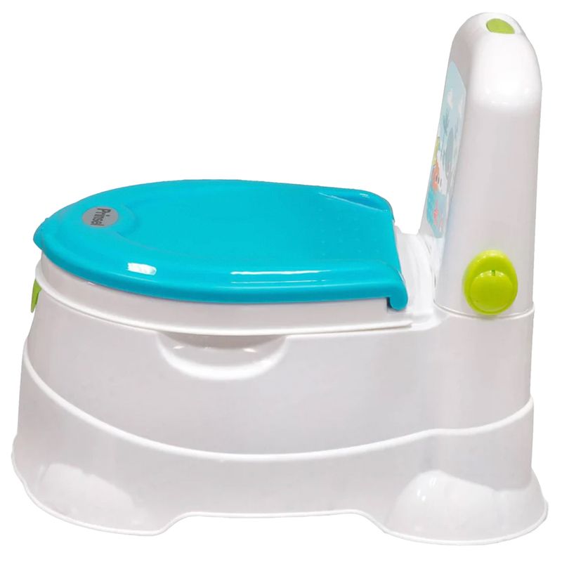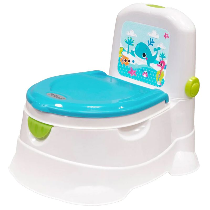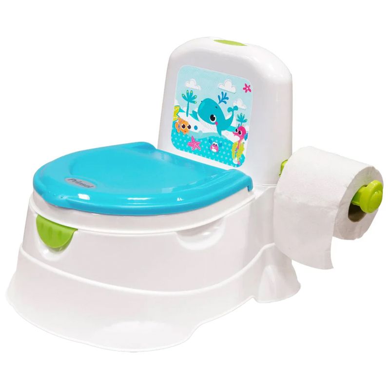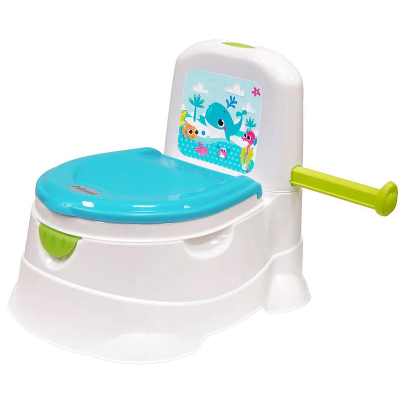 Aprender a ir al baño será más divertido y cómodo con el entrenador Trend, es un bañito con diseño novedoso. Con sonido electrónico de una divertida canción, asiento con bordes redondeados, con deflector para evitar escurrimientos, patas antiderrapantes. El asiento es removible para usarlo como reductor en el baño.