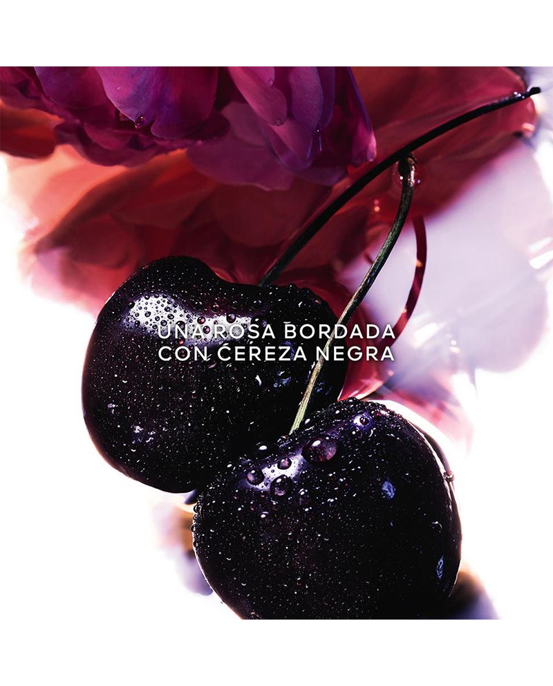 La Petite Robe Noire Eau de Parfum Intense, una estela floral golosa irresistible. La rosa icónica de La Petite Robe Noire se ve sublimada por unas notas afrutadas de arándano y frambuesa. Una pizca de bergamota acompañada de almizcles blancos y de un acorde amaderado de sándalo y pachulí dan vida a un perfume de estela exquisita e inolvidable.
