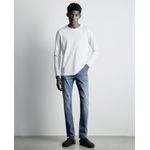 Jeans slim fit de la marca española Sfera, prenda en color azul medio y diseño denim.