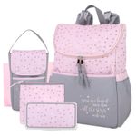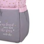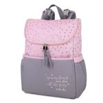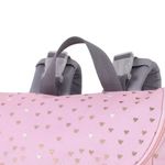 Pañalera para bebé niña, tipo bolsón 5 en 1 incluye cambiador plástico, bolsita mediana, bolsita pequeña y estuche para toallitas húmedas, con estampado de corazones.