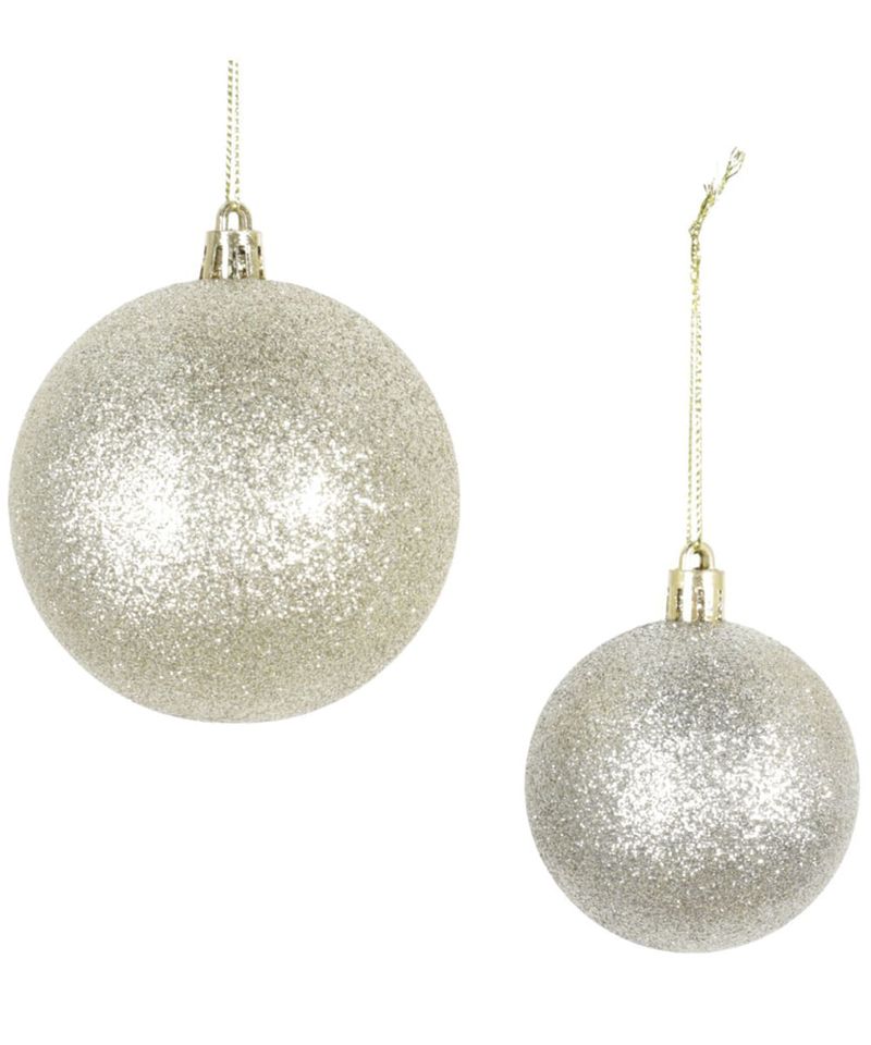 Set de 67 unidades de esferas y listones navideños celeste y champagne