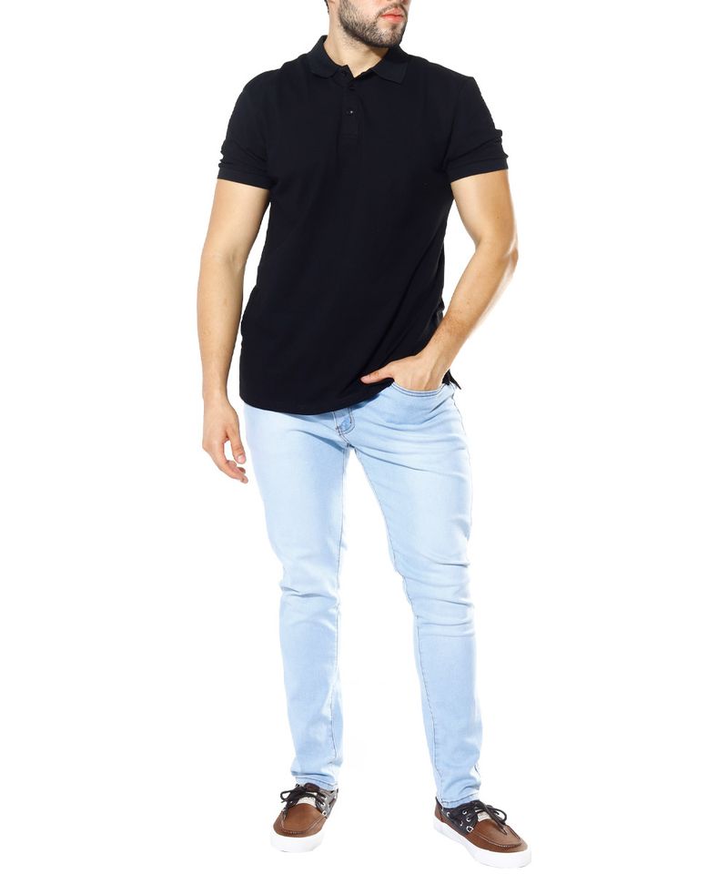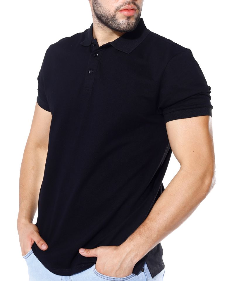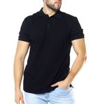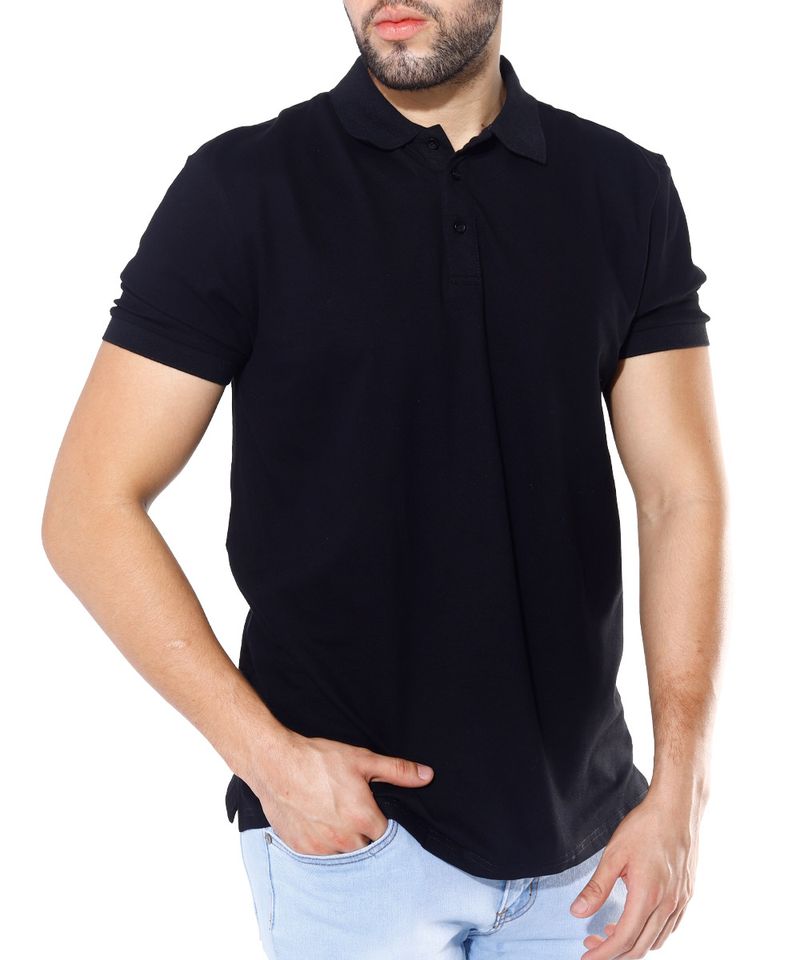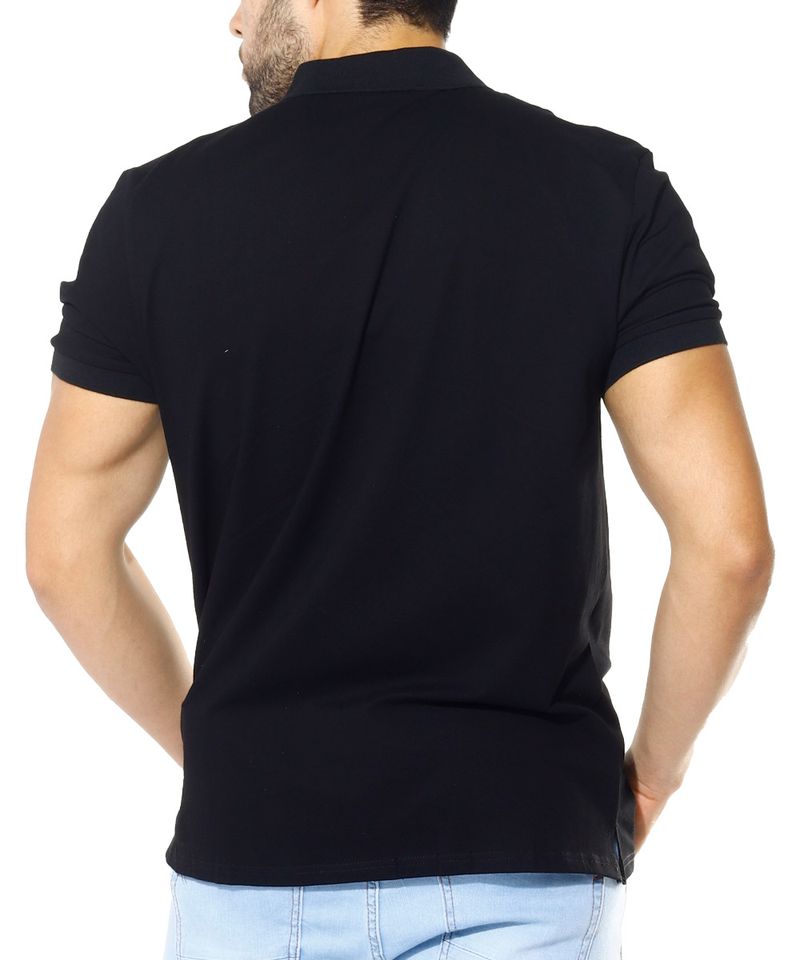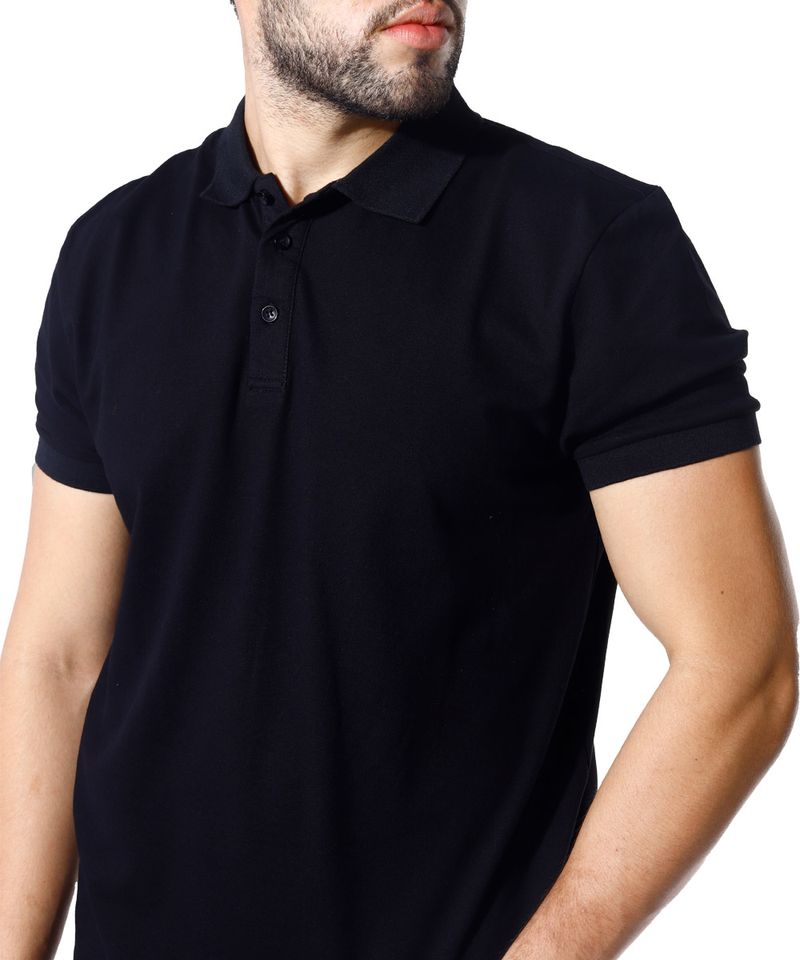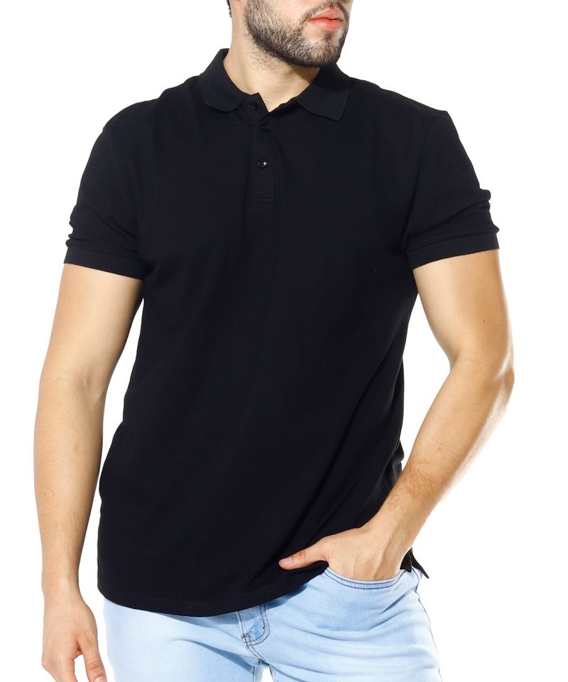 Camisa tipo polo básica diseño sólido en color negro. Cuello con cierre de tres botones y manga corta. Prenda versátil que podrás combinar con jeans para un look casual y relajado o utilizar por dentro con pantalón chino para crear un outfit semi formal.