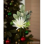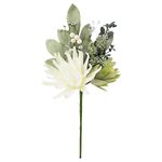 Rama decorativa de protea en color blanco con follaje, ideal para floreros, centros de mesa y árboles navideños.