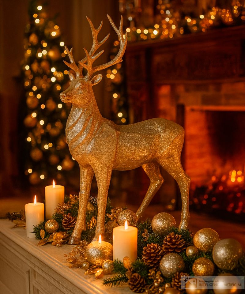 Este reno decorativo de 27 cm, cubierto de glitter, es un adorno festivo ideal para la temporada navideña. Su apariencia brillante y elegante añade un toque de magia y resplandor a cualquier decoración.