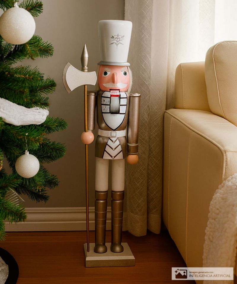 Figura de cascanueces con un sombrero alto decorado con un copo de nieve.