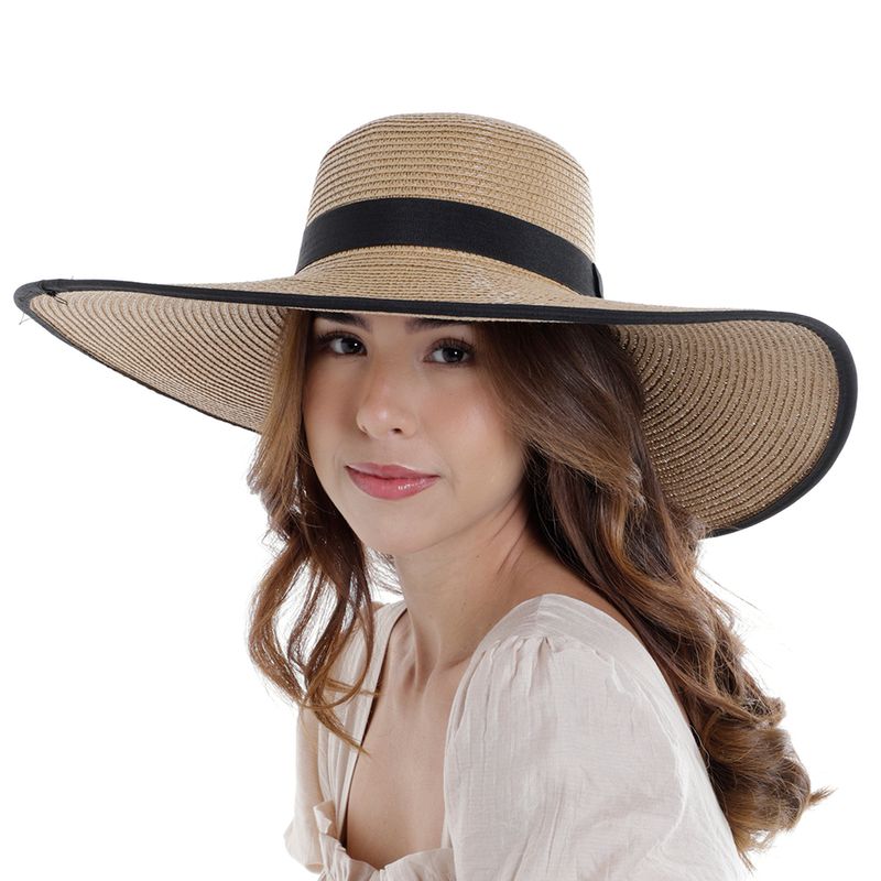 Este sombrero de ala ancha es el accesorio perfecto para quienes buscan un estilo sofisticado y elegante. Ofrece una protección ideal contra el sol y aporta moda a cualquier conjunto. El diseño clásico y atemporal en color café con detalles en negro que se adapta a diversas ocasiones, desde un día de verano hasta eventos al aire libre.
